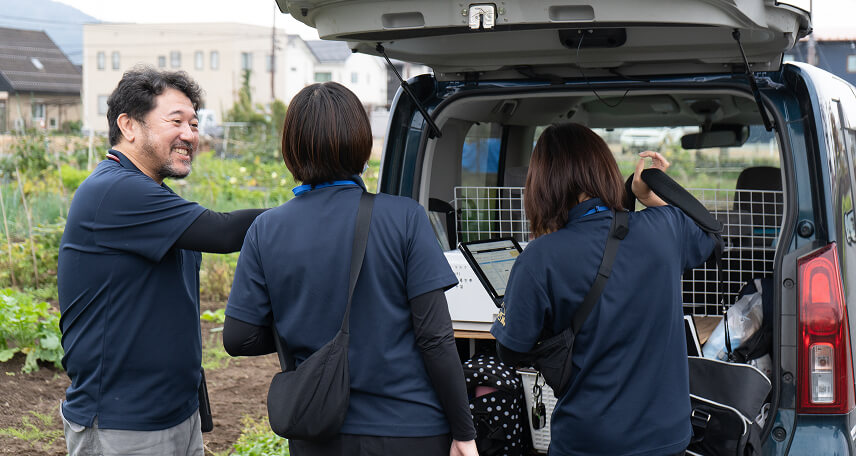 診察/治療に必要な物品の準備・運転・現場でのカルテ入力は診療アシスタントが、バイタルチェック/処置の多くは看護師が行います。積極的なタスクシフトで医師が診察や判断などの本質的な役割に集中できる体制を整えています。また、ICTを効果的に活用し医師同士で日常の困りごとを気軽に相談し合える風土があります。